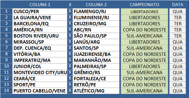 Libertadores, Sul-Americana e Copa do Nordeste.