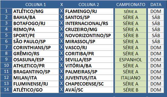 Brasileirão séries A e B e campeonatos europeus.